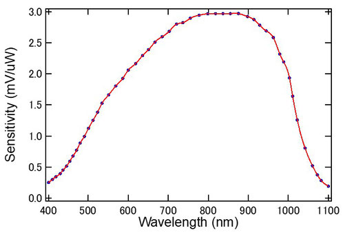 図16-5 フォトダイオードセンサの分光感度特性(Range M)。