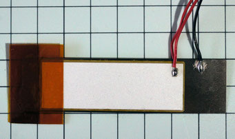 図8-2 KINEZ 振動発電素子(大)-両面・大電流タイプ(K7520BP2)へのハンダ付け配線およびクランプ部へのカプトンテープによるマスキング