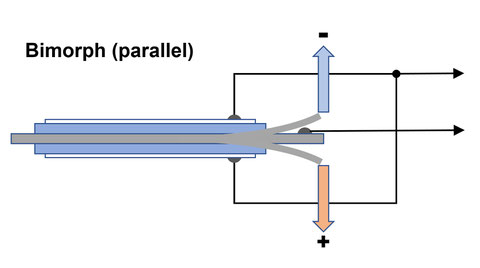 図8-1 両面(Bimorph) 並列(Parallel)型の圧電素子(ピエゾ素子)