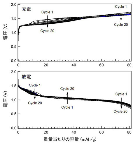 Fig.2 亜鉛ヨウ素イオン二次電池の充放電特性.